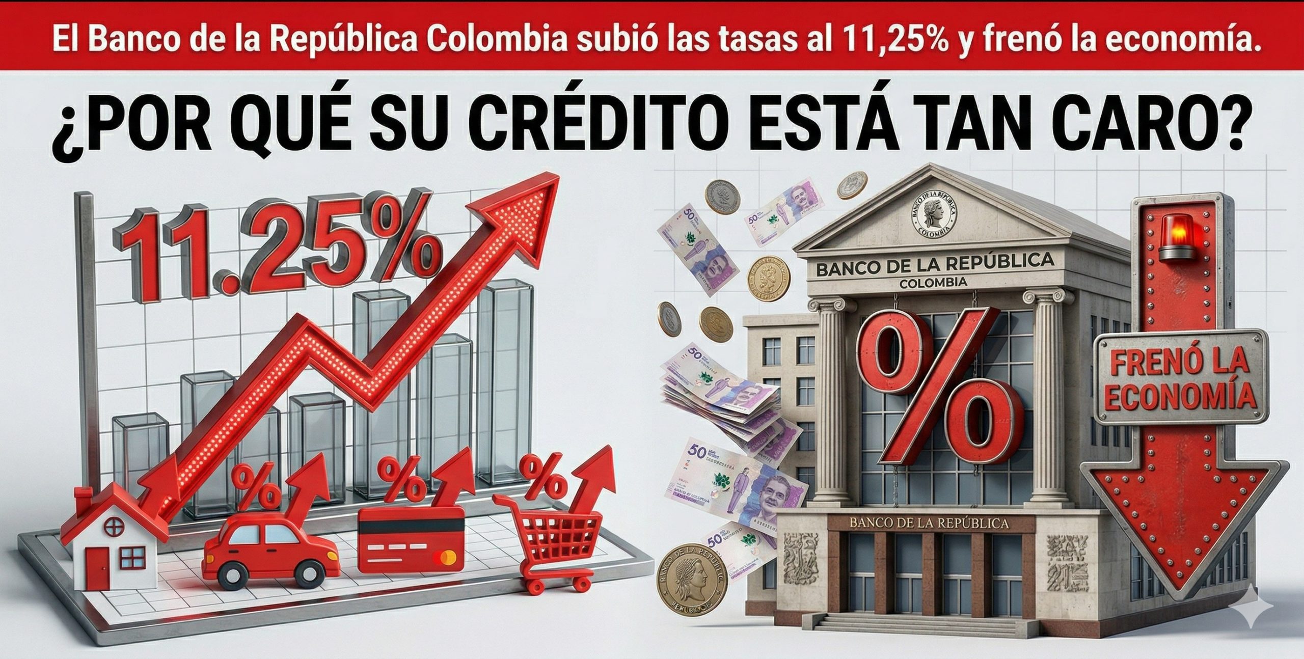Cuando la tasa de interés sube, el crédito se encarece. Las cuotas mensuales aumentan, los plazos se extienden, muchos no pueden pagar. La gente deja de comprar, los negocios dejan de invertir, se frena el empleo y el crecimiento se desacelera. Subir la tasa es, en la práctica, ponerle un freno a la economía. Y eso es exactamente lo que hizo el Banco de la República al aumentarla al 11,25%.